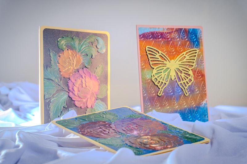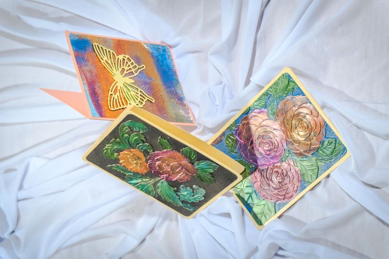 I make greeting cards for fun! Each one is hand-painted and unique. These are put together with utmost care, and I usually give them out to close friends to commemorate their life events.